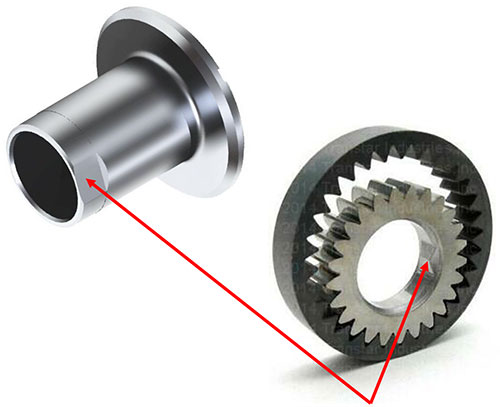 Dog teeth Drive on inner pump gear