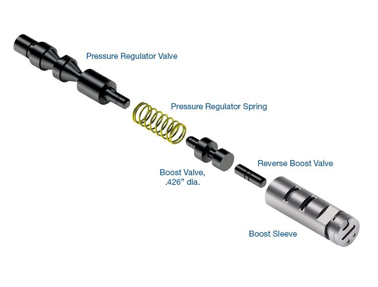 Restore proper hydraulic control by refurbishing the bore and installing an improved and oversized Sonnax pressure regulator valve and new boost assembly to match ratios and OE pressure curves.